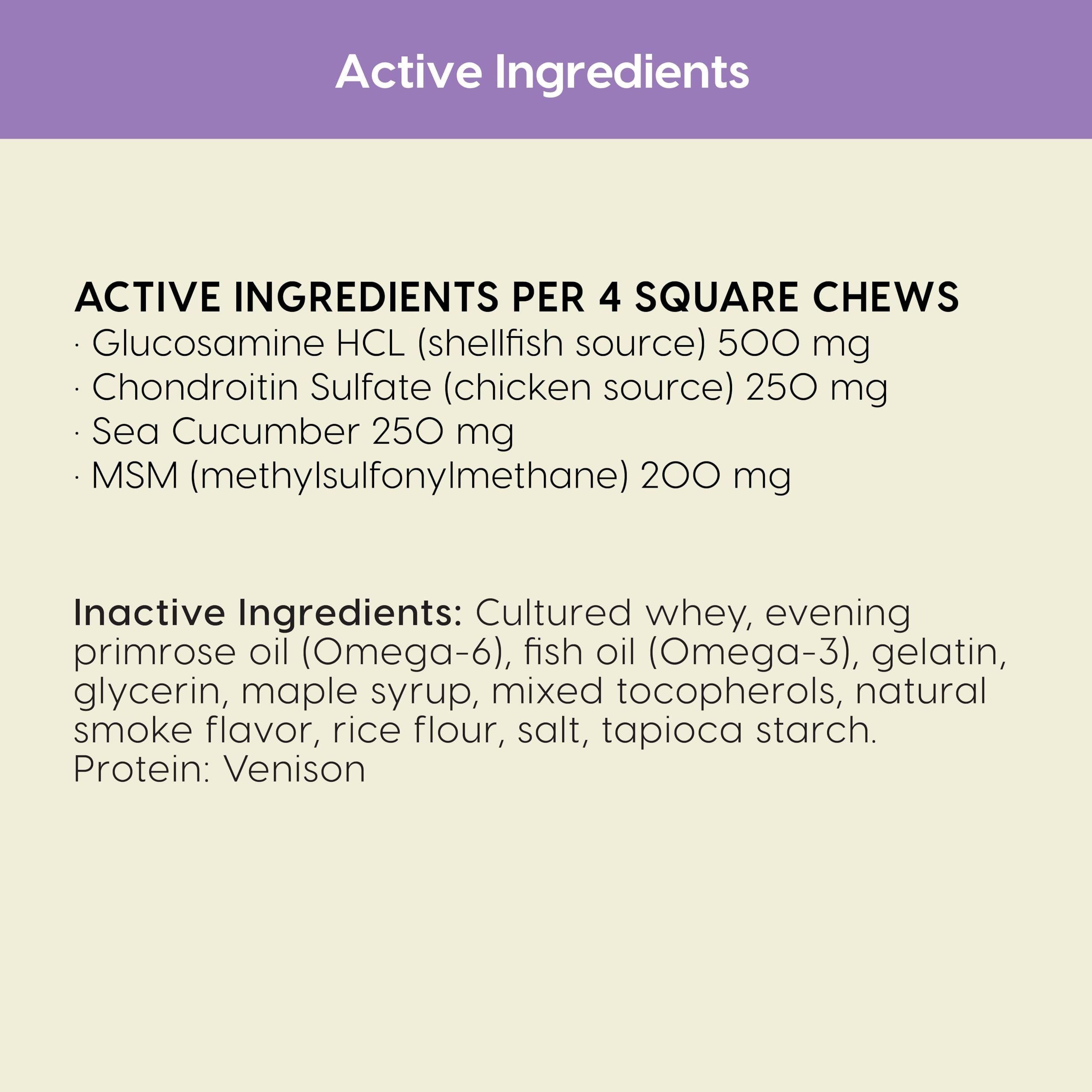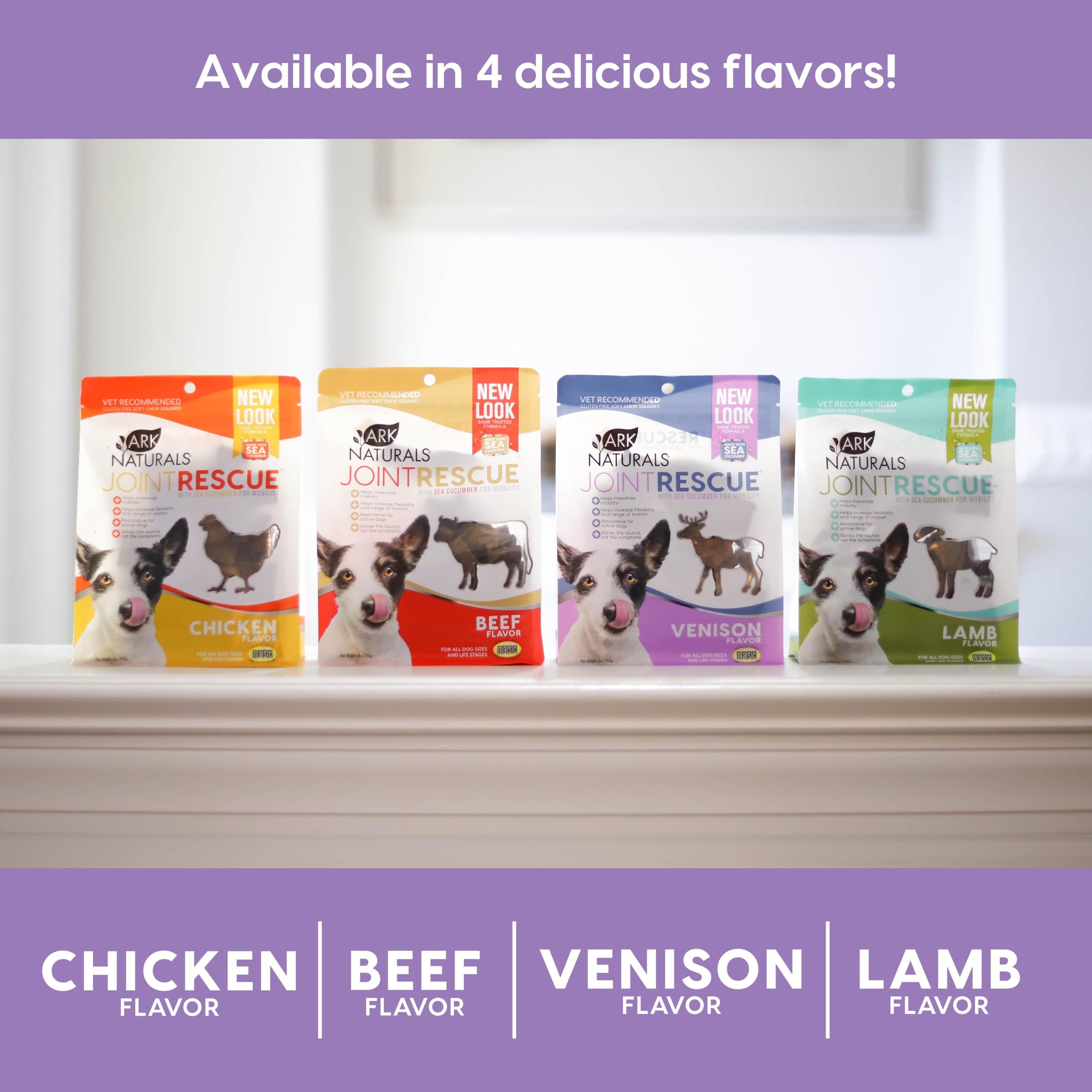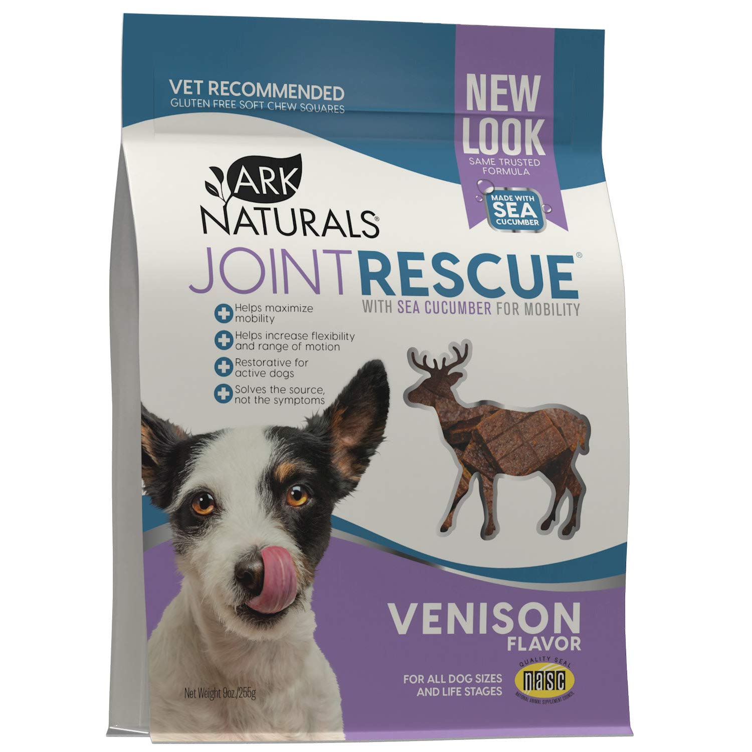 • Included components: includes (1) 9 oz. bag of ark naturals sea mobility joint rescue chews, venison.