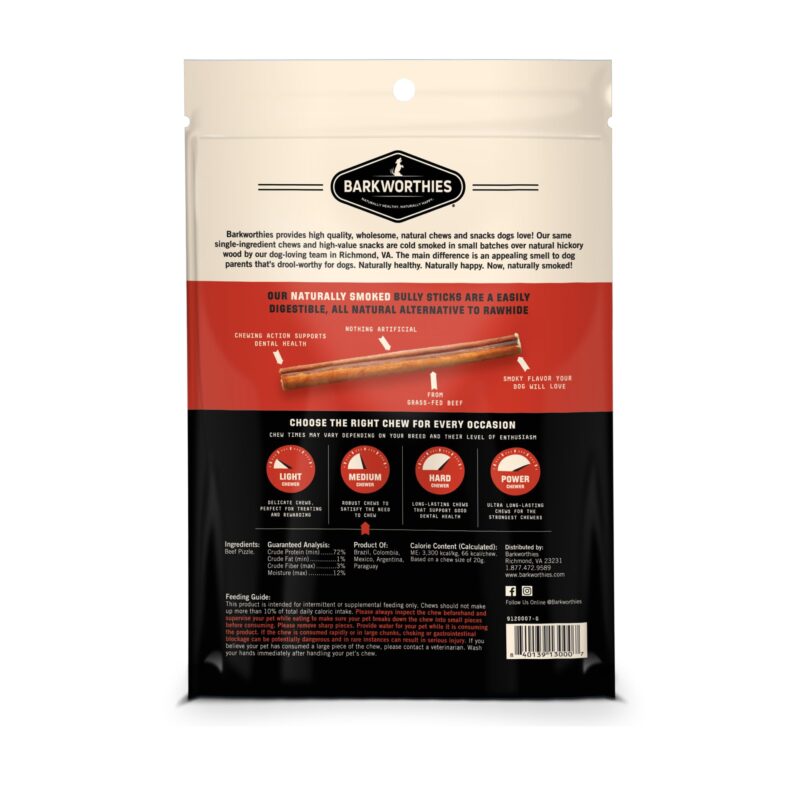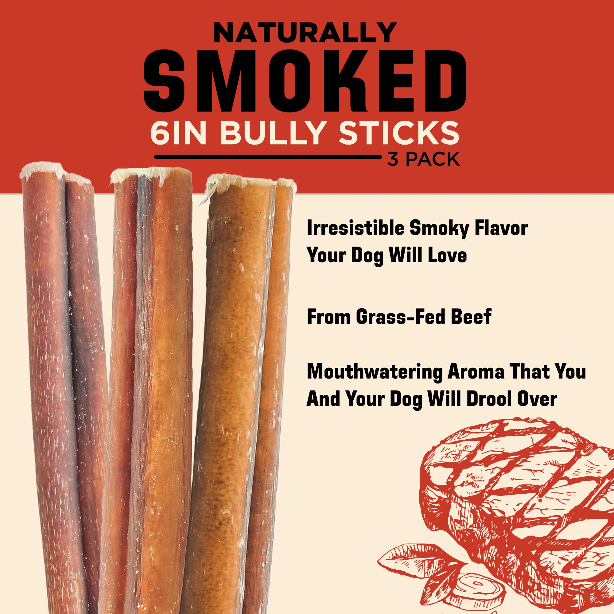 - REAL HICKORY SMOKED FLAVOR: Indulge your dog with a smoky treat they won’t be able to keep their paws off of. Each bully stick is authentically hickory smoked to perfection in our Richmond, Virginia USA smokehouse, delivering an irresistible flavor that captivates even the most discerning canine palates.