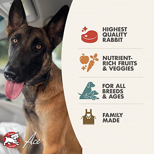 - DRY DOG FOOD – Our 4 lb bag of dog food contains a specially prepared entre with rabbit, duck, peas, potatoes, and a mix of fruits & vegetables. Meets the nutritional levels established by the AAFCO Dog Food Nutrient Profiles for all life stages.
